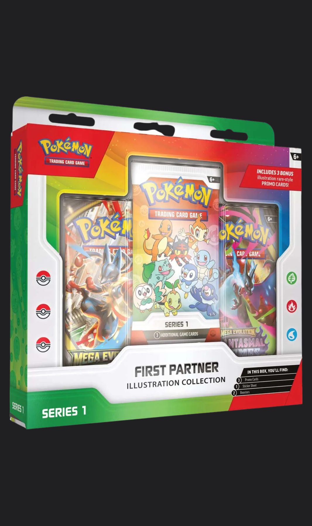 The Pokémon TCG: First Partner Illustration Collection—Series 1 includes: